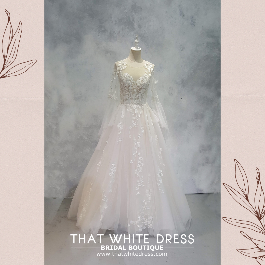 211BY10W01 Phoebe LS Skin Floral Trumpet Bridal dress rental long sleeves Kuala Lumpur