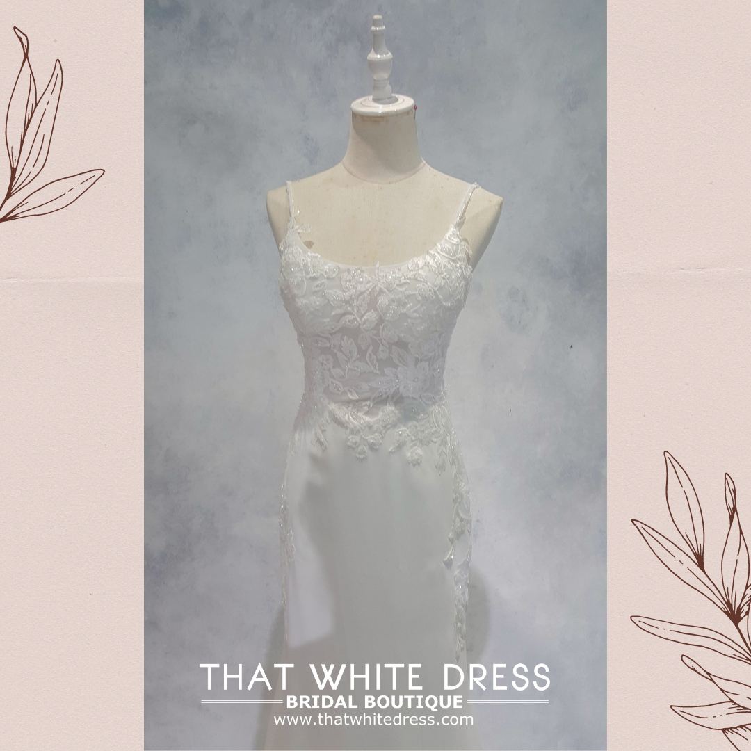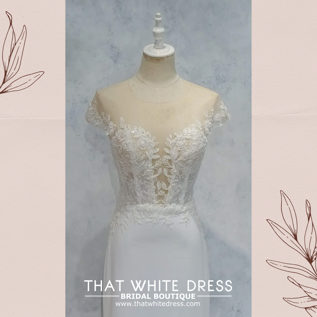 812BY02W03 Maryssa Strap V neck illusion bodice satin sheath Minimalist Sheath Crepe Wedding gown rental Kuala Lumpur