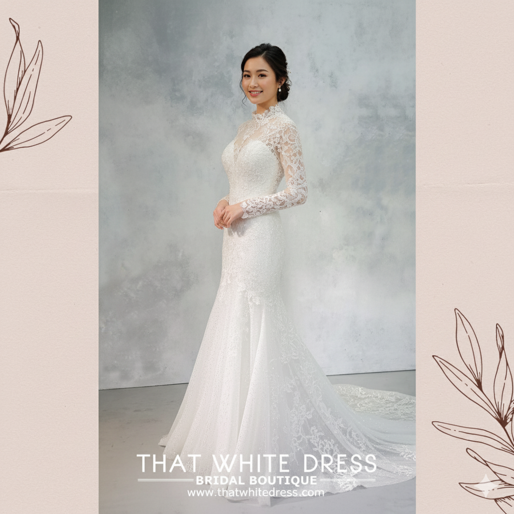 2210EL05W04 Patricia High collar baroque mermaid Long Sleeves Wedding Dress Rental Malaysia