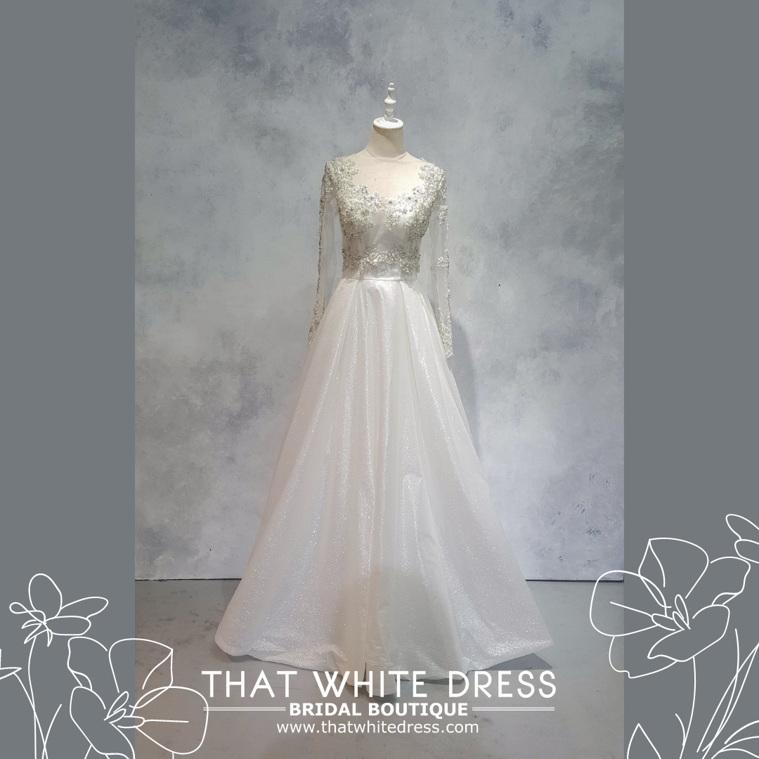 610CCW01 Dantella Long Sleeves Illusion Satin button back Long Sleeves Wedding Dress Rental Malaysia
