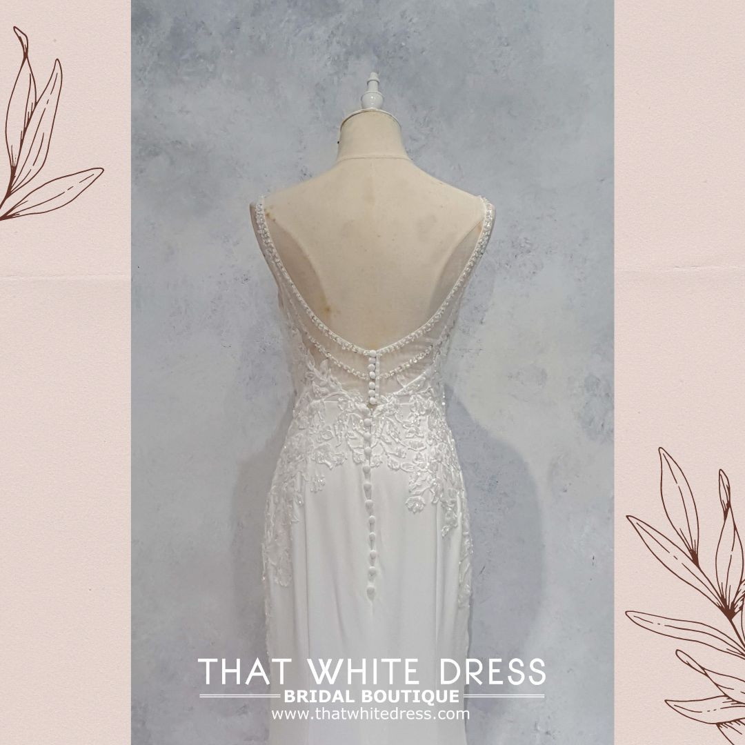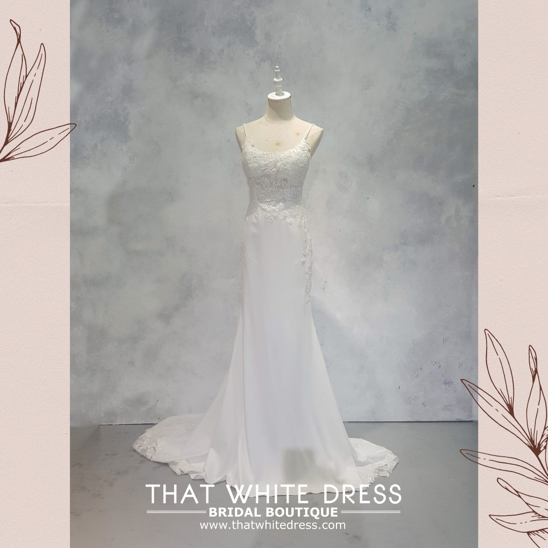 2210EL05W06 Gianna Spag Strap Straight Neck Crepe Floral Petaling Jaya Bridal Gown Rental Designer