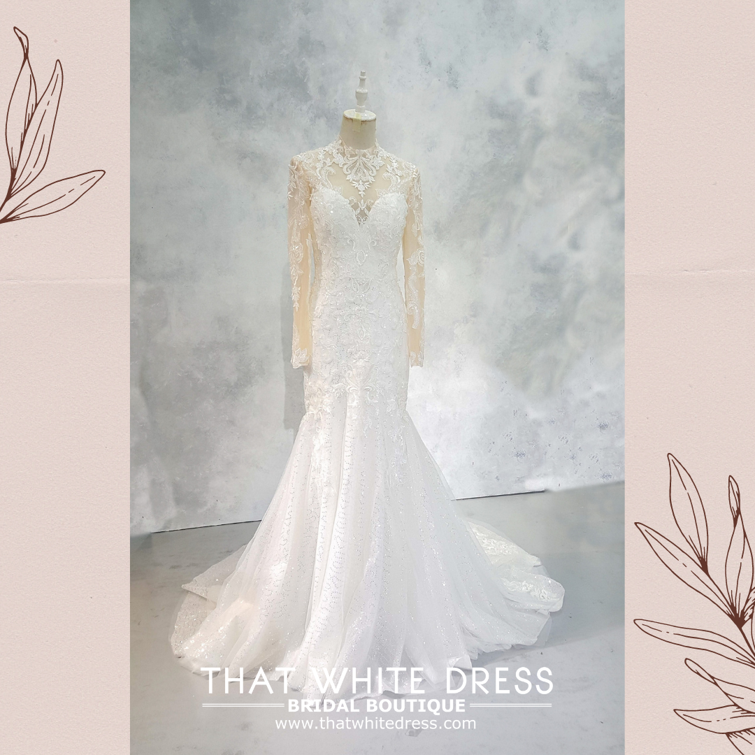 2210EL05W04 Patricia High collar baroque mermaid Pengantin Muslimah Melayu Gaun sewa Bridal Gown rental Pengantin Gaun Sewa Petaling Jaya