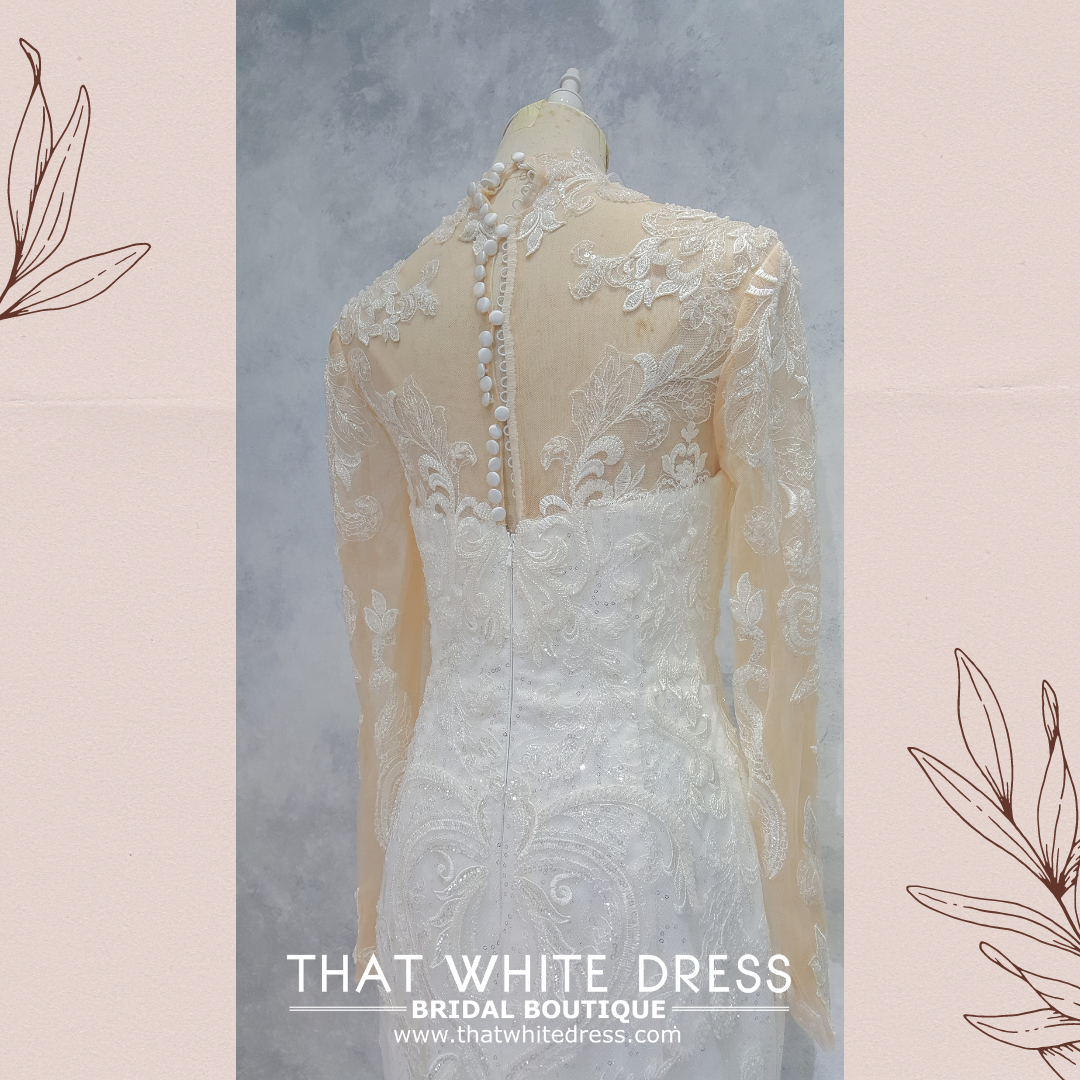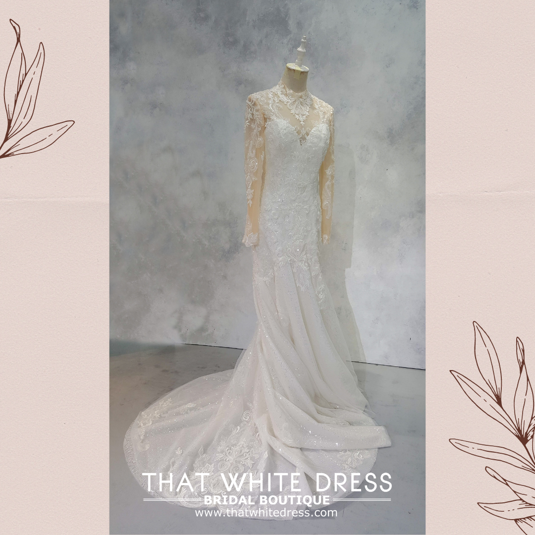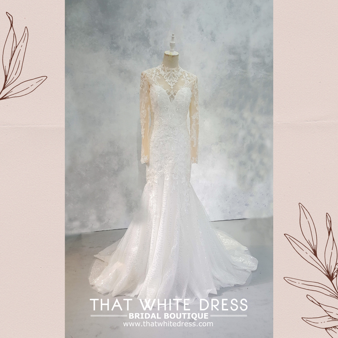 2210EL05W04 Patricia High collar baroque mermaidLong Sleeves Wedding Dress Rental Malaysia, Pengantin Muslimah Malaysia, Muslim Bride Malaysia, Church wedding dress long Sleeves Malaysia high neck
