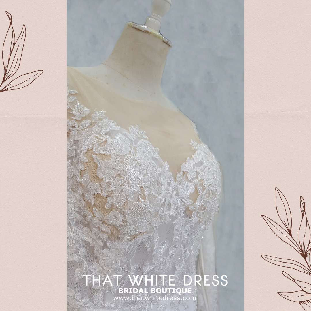 2210EL05WL01 Alice PLUS LS Illusion neck trumpet floral lace Plus size Curvy bride malaysia Petaling jaya