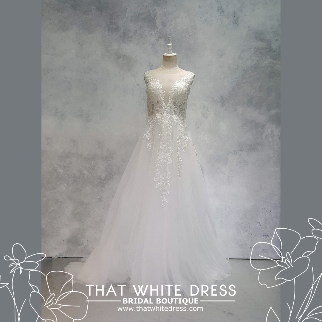 224ML03WL03 Lesley PLUS Illusion V neck Soft Tulle A line Plus size Pengantin Bride gown rental