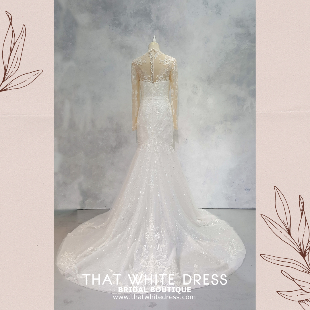 2210EL05W04 Patricia High collar baroque mermaidLong Sleeves Wedding Dress Rental Malaysia, Pengantin Muslimah Malaysia, Muslim Bride Malaysia, Church wedding dress long Sleeves Malaysia high neck