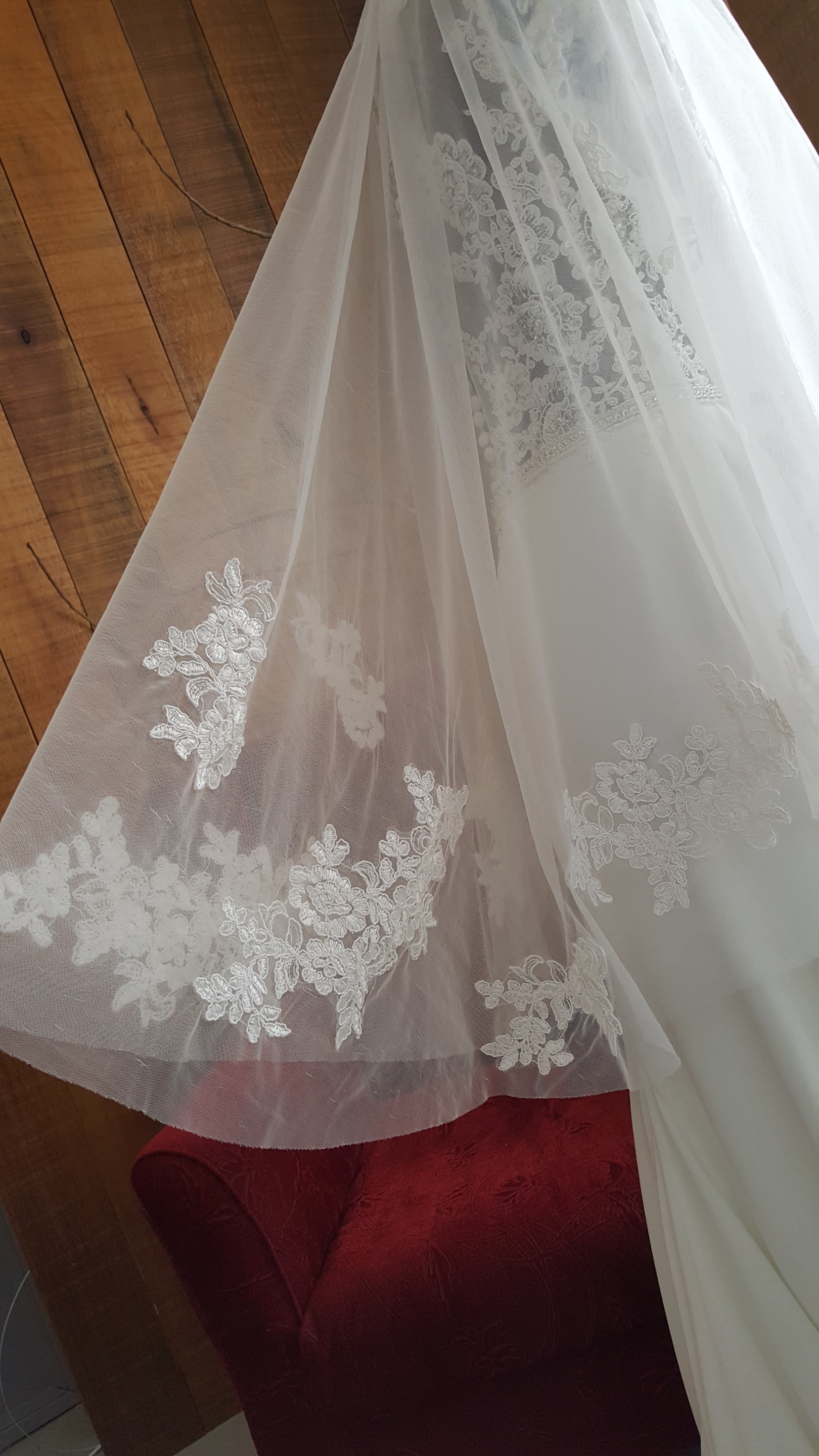 Type of Lace: French Alencon corded Lace, Lace scattered along the back of the veil, front is clear no lace