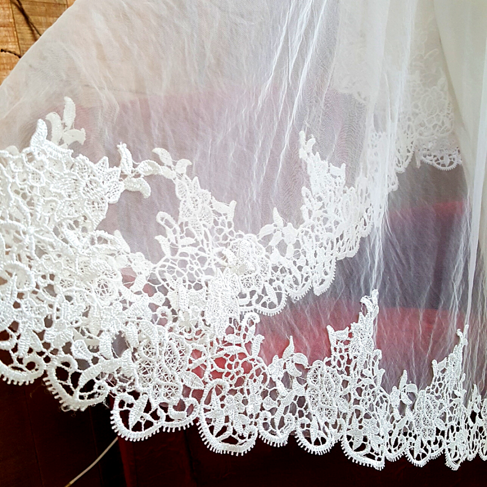 Type of Lace: French Guipure Lace, Full Lace along the border of the veil