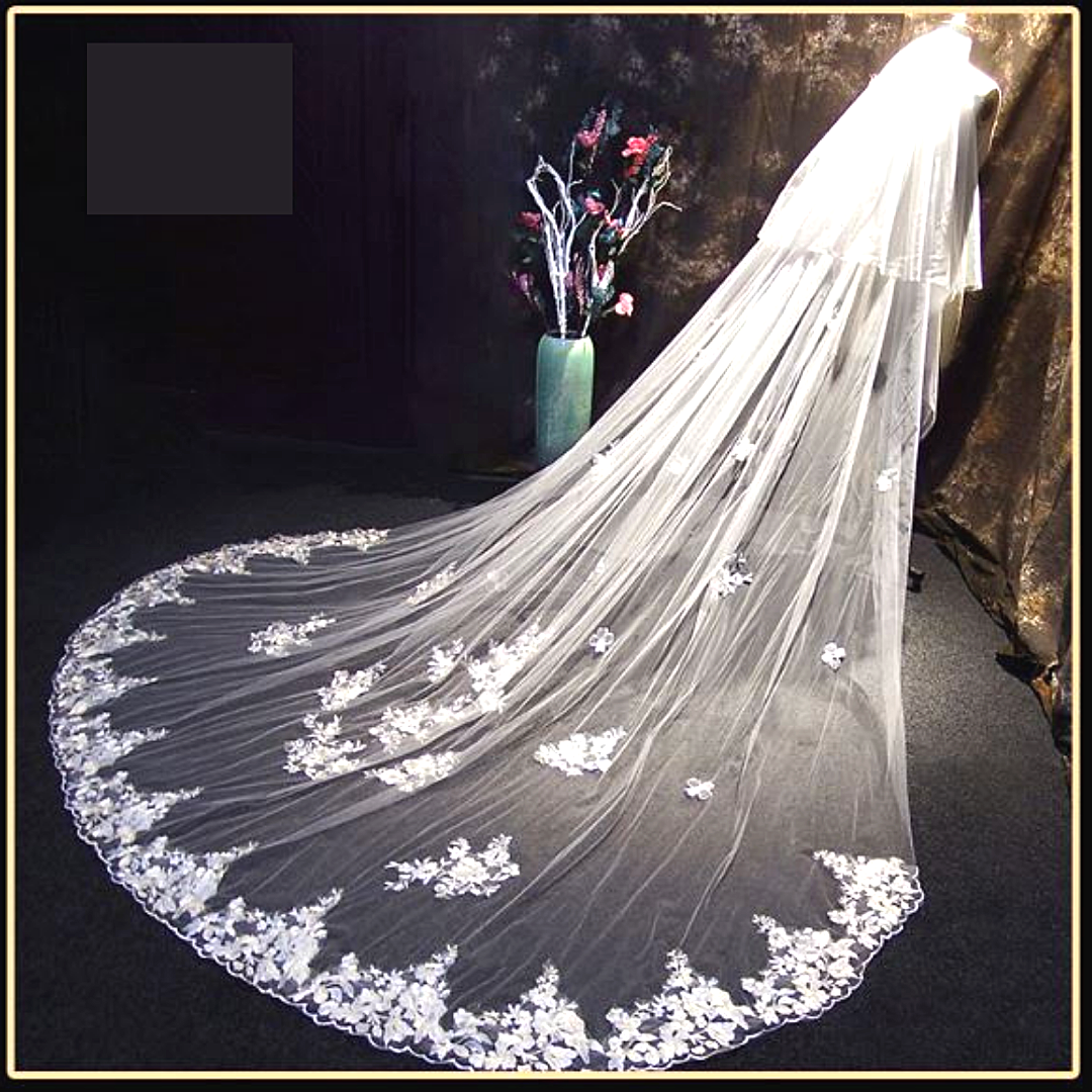 VT022c TWD Premium Bride Wedding Veil French Guipure Embroidered Champagne Lace Cathedral length 4 meter/Veil Tudung Pengantin Nikah Sanding