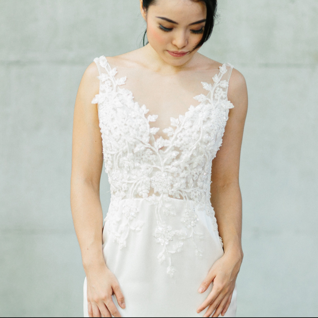 608LL04 LL Soie Low V neck illusion Silk Satin 30 ROM wedding dress rental Malaysia, Simple wedding dress malaysia, ROM wedding gown Kuala Lumpur, Garden wedding reception Malaysia,