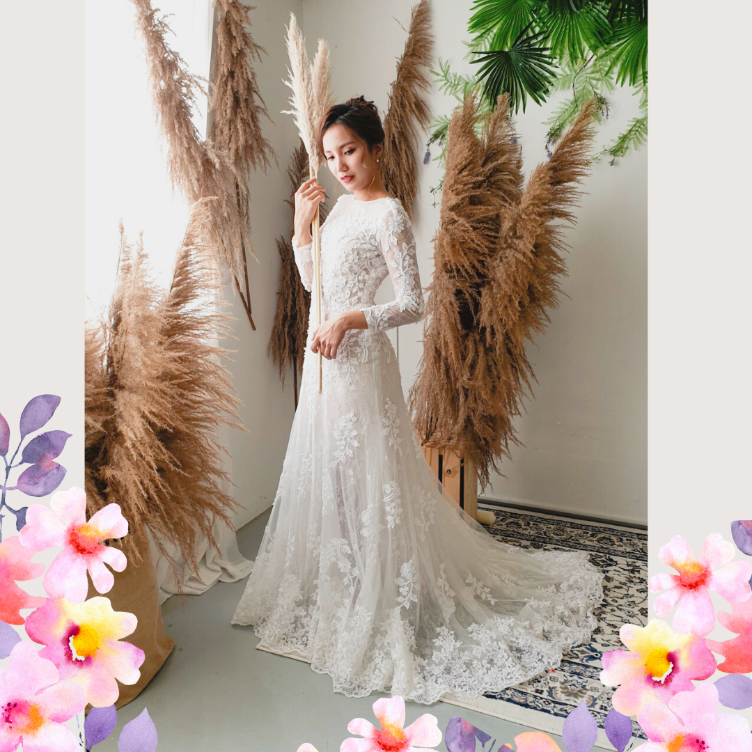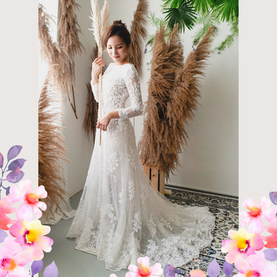 We have a wide collection of long sleeves wedding dresses suitable for Muslimah and Hijab brides.