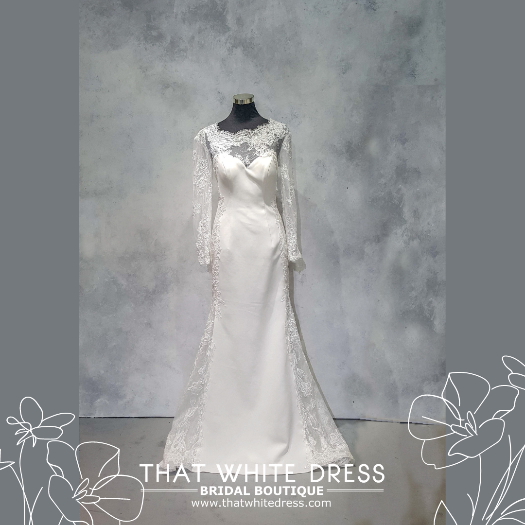 610CCW01 Dantella Long Sleeves Illusion Satin button back Long Sleeves Wedding Dress Rental Malaysia