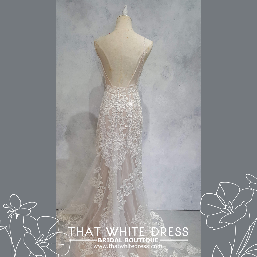 224ML03W01 Aurora Spag straps bohemian full lace  wedding gown near me Petaling Jaya Malaysia
