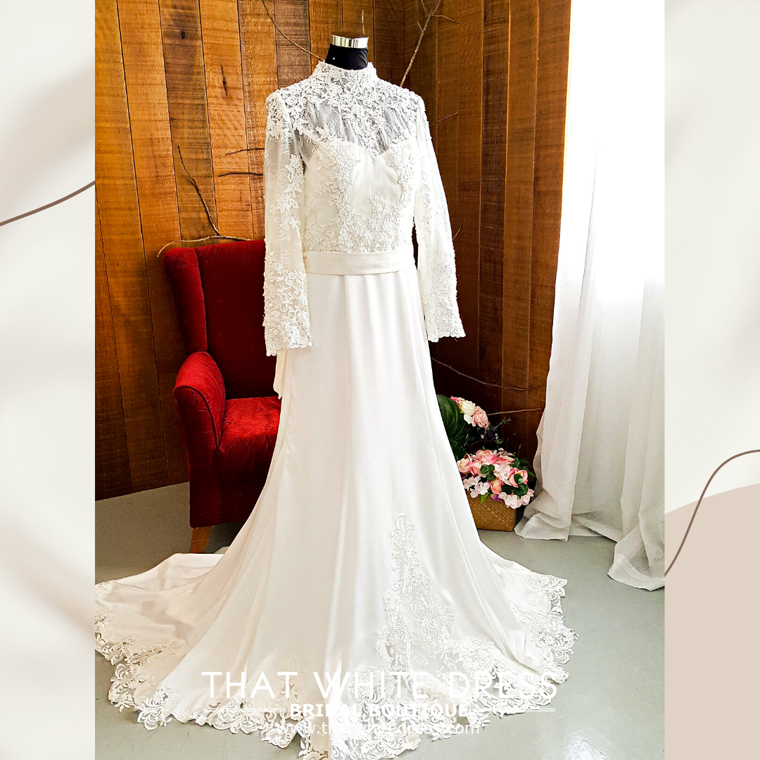 214LLWL01 Pure Plus Sweet Heart Silk Satin A line high collar long sleeves Pengantin Muslimah Saiz Besar Malaysia Sewa