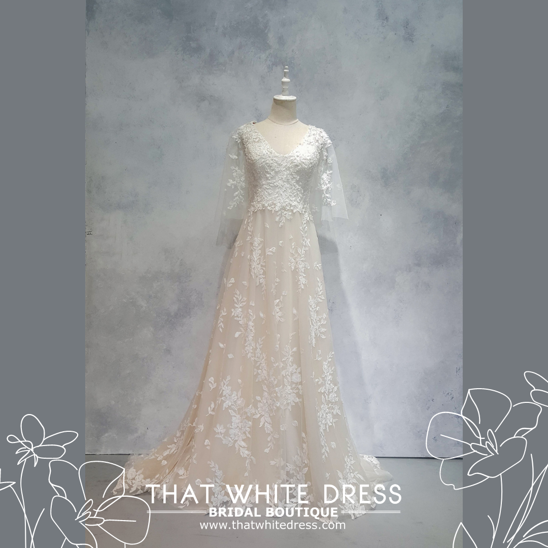 219ML01WL02 Vila Plus Flutter Sleeves Floral A line Plus Size Bride Dress Rental, Simple wedding dress, ROM gown Kuala Lumpur